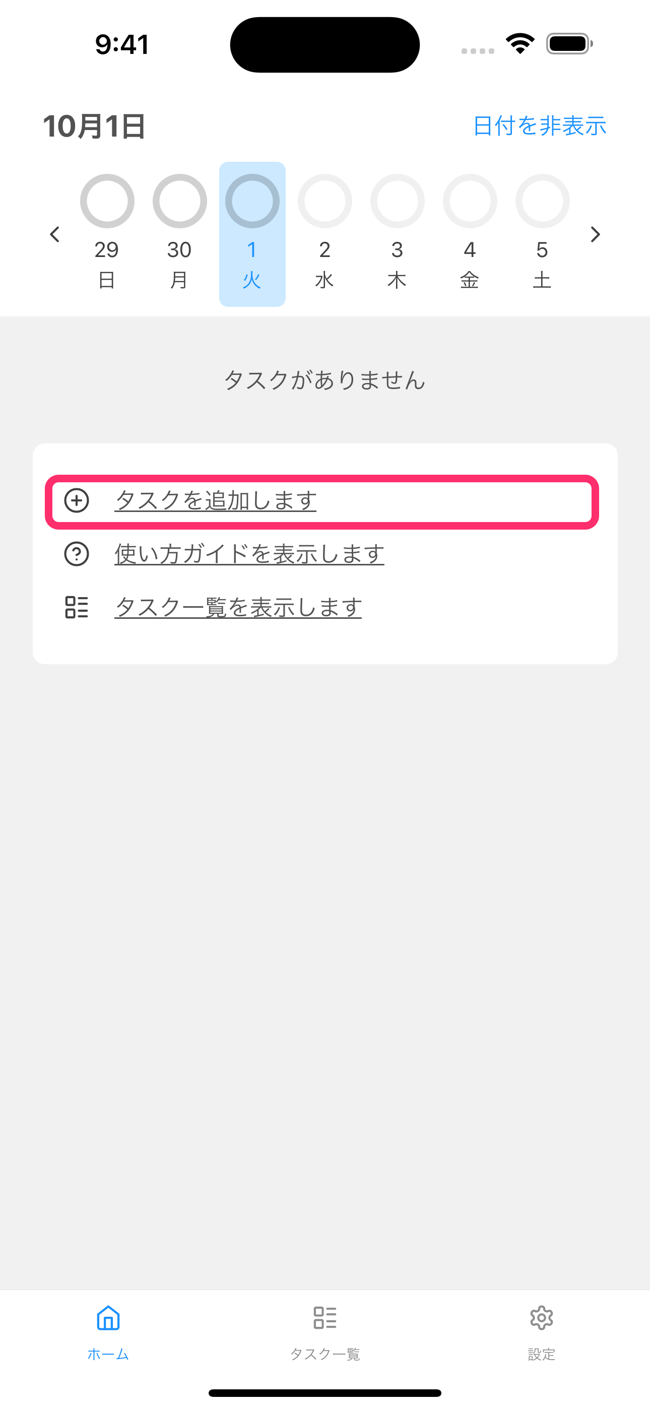 ホーム画面に表示されている「タスクを追加します」のリンクをタップしてください。