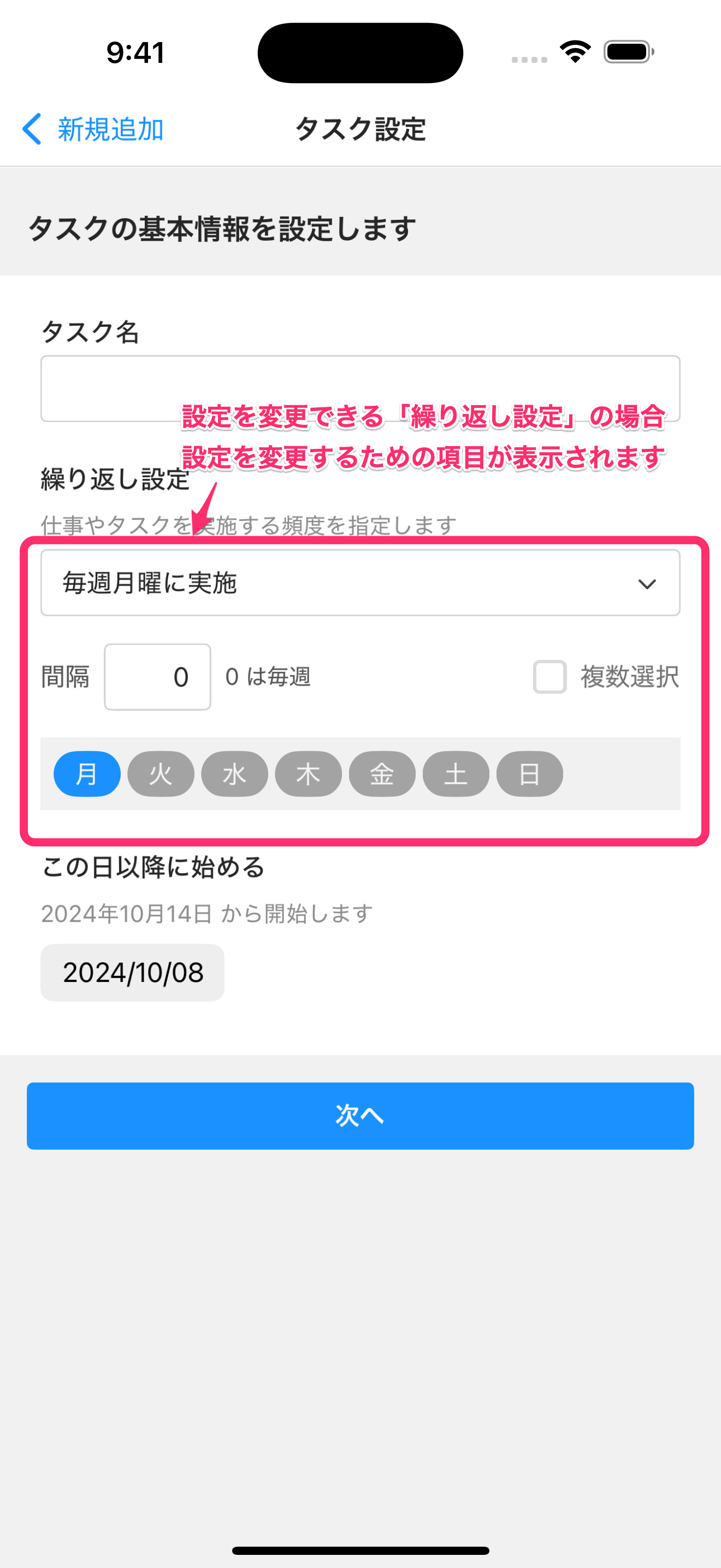 - 設定の変更に合わせて繰り返し設定の表示が更新されます。