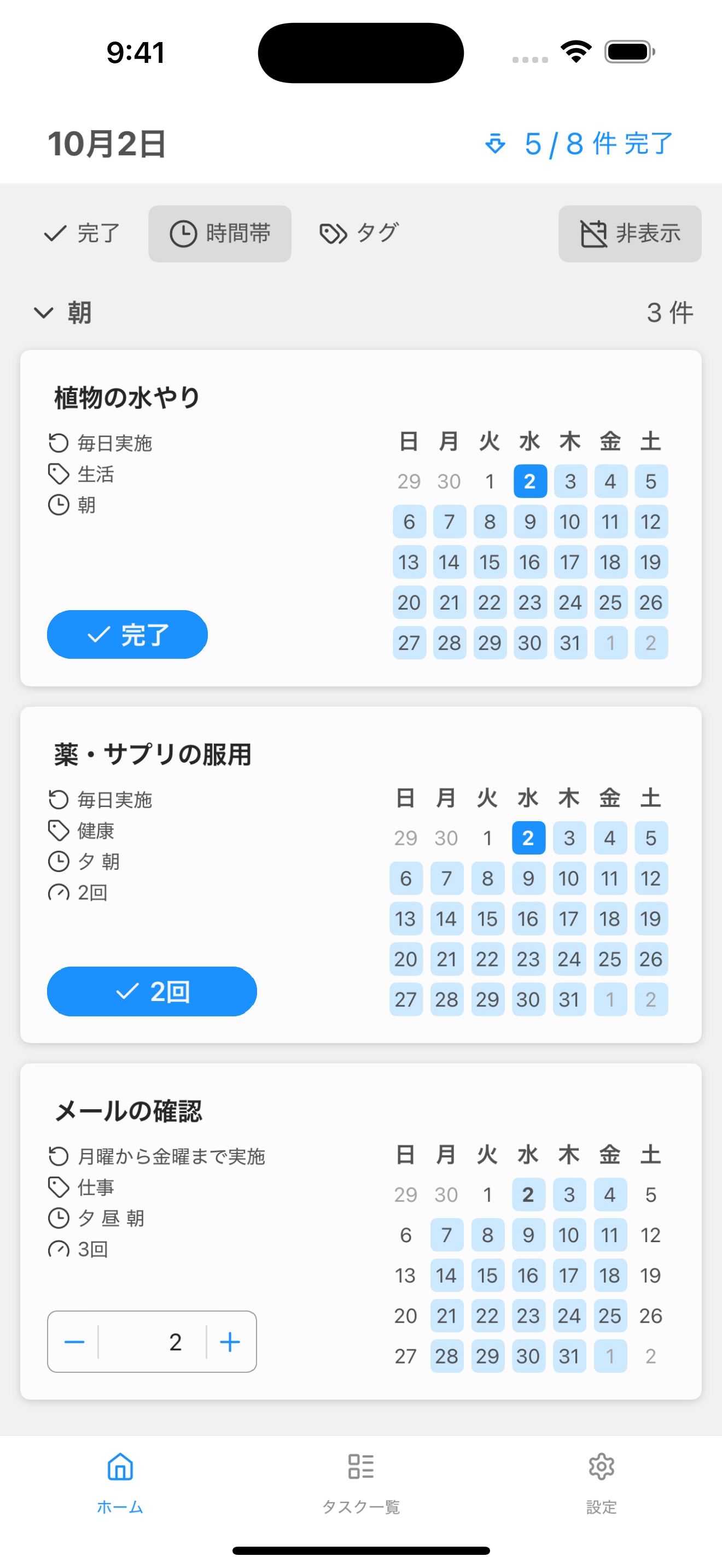 | 回数方式 | タスクを実施したとき+ボタンをタップします。